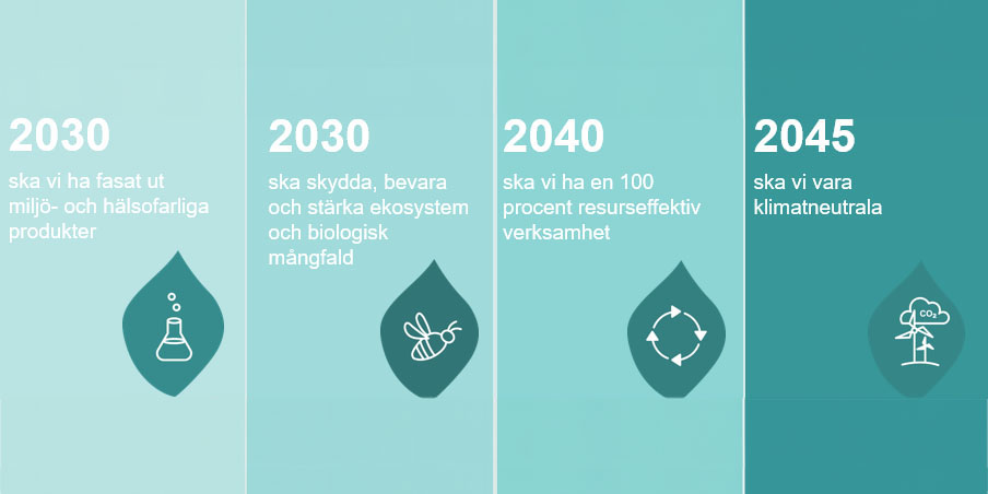 Våra väsentliga hållbarhetsfrågor sammanfattar vi i våra externa och interna mål inom ramen för våra fyra målområden, vilka är tydligt integrerade i Peabkoncernens fokusområden och affärsplanemål och hjälper oss att hela tiden styra mot hållbara metoder och arbetssätt. Vi är lokalt förankrade och eftersträvar alltid ett närproducerat samhällsbyggande. Vårt bidrag till en hållbar samhällsutveckling innebär till exempel att vi bygger hus eller att vi anlägger en modern infrastruktur, men det innebär också att vi bidrar till bästa möjliga förutsättningar för människorna som ska vistas i miljöerna som vi planerar, bygger och anlägger.