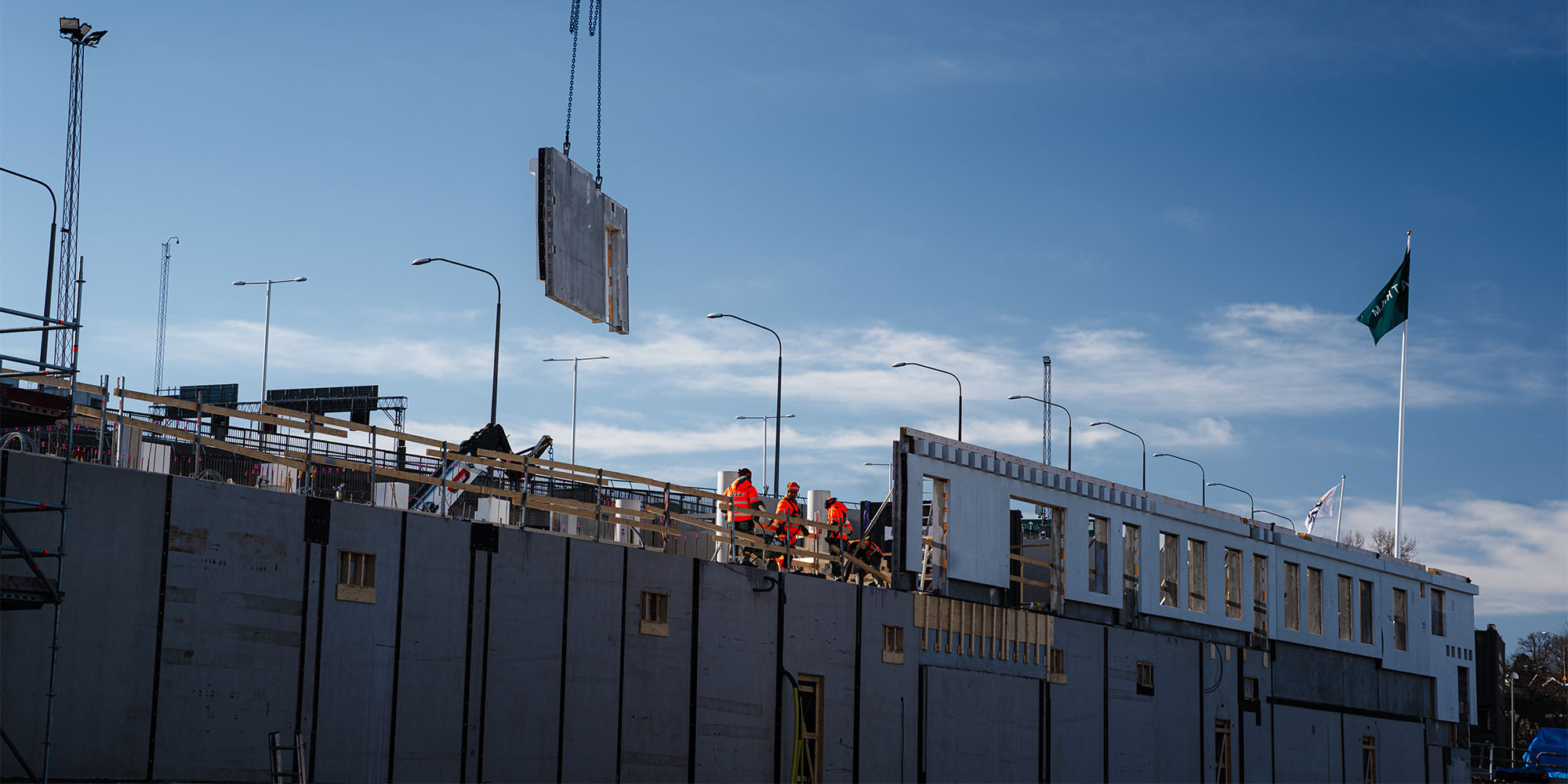 Med noggrann planering och precision genomfördes under onsdagen en viktig milstolpe för Peabs bygge av ett nytt äldreboende, Villa Primus, på Lilla Essingen i Stockholm. Från 70 meters höjd lyfte stora kranar väggarna på plats och byggnaden börjar ta form ovan mark. Villa Primus beräknas vara färdigställt under 2028.